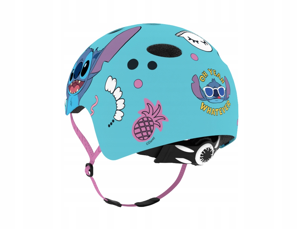 Na zewnątrz wykonany jest z trwałej i wytrzymałej powłoki ABS, wewnątrz znajduje się absorbująca uderzenia pianka EPS. Kask ozdobiono kolorowymi wzorami przedstawiającymi bohaterów z bajek Disney.