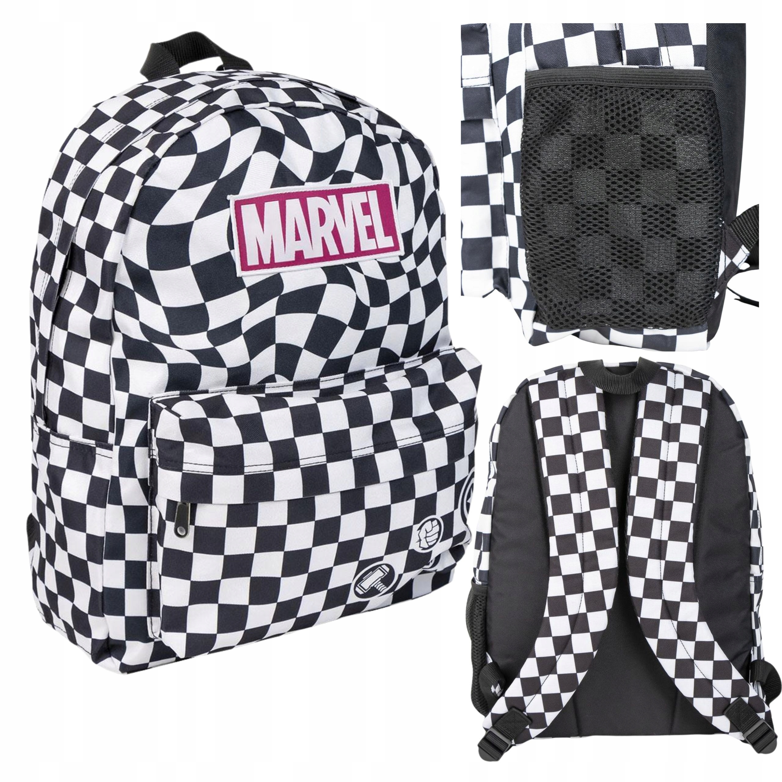 PLECAK SZKOLNY JEDNOKOMOROWY POJEMNY DUŻY Marvel szachownica 42x32x12cm