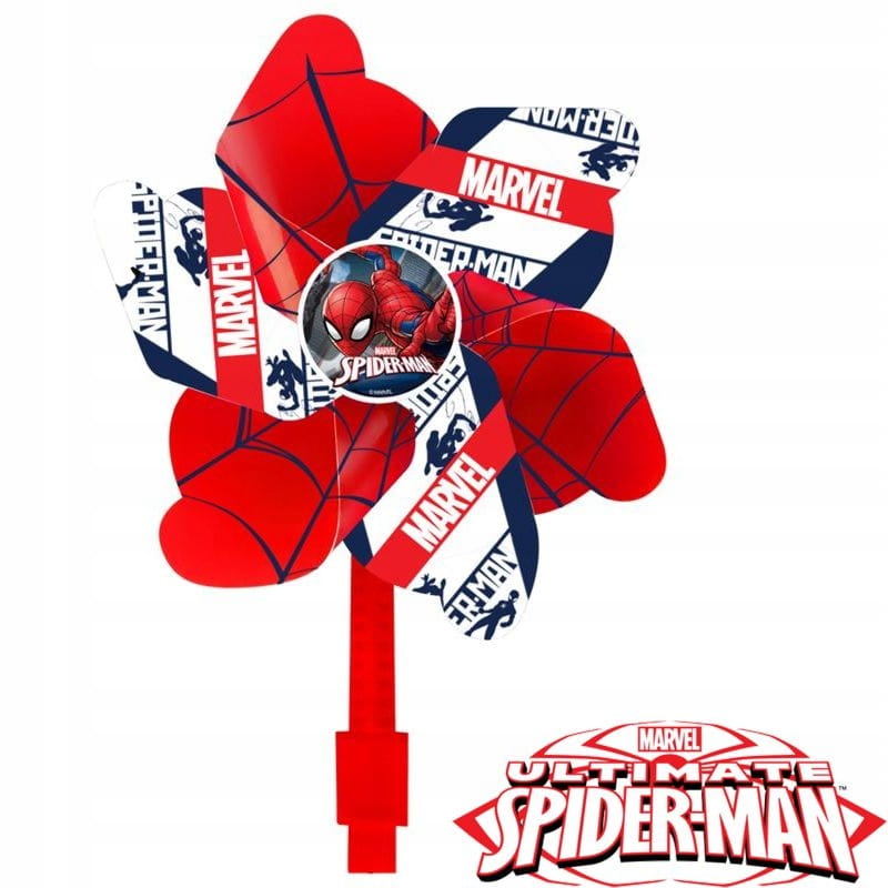 Śliczny, kolorowy wiatraczek na kierownicę rowerka, hulajnogi z motywem z produkcji o SPIDER-MANie sprawi, że jazda tymi pojazdami będzie jeszcze większą frajdą. Wiatraczek mocowany bez użycia narzędzi do kierownicy praktycznie każdego rowerka, hulajnogi, wózka itp.